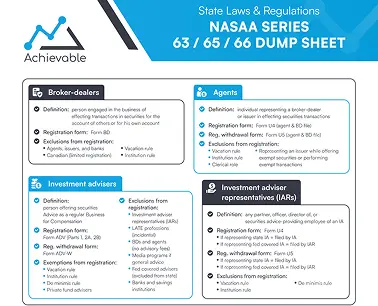 Check out our free Series 65 cheat sheets / Series 65 dump sheets and podcasts to help you prepare for the FINRA Series 65 exam or for a quick refresher on the Series 65 fundamentals.