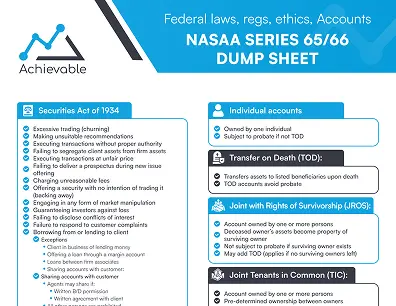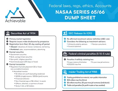 Check out our free Series 66 cheat sheets / Series 66 dump sheets and podcasts to help you prepare for the FINRA Series 66 exam or for a quick refresher on the Series 66 fundamentals.